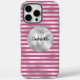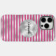 Chic Pink Silver Stripes Monogram Case-Mate iPhone Case