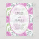 You will adore this beautiful, modern wedding invitation design, perfect for spring and summer weddings. It features stunning watercolor floral elements, including large pink roses and lush green foliage. Your information is elegantly contained within an oval shape, creating a sophisticated translucent effect over the design. Ideal for romantic garden weddings, this invitation adds a touch of nature-inspired charm. Customize with ease to create the perfect invitation for your special day.