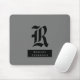 Chic Plain Gray and Black Classic Monogram Mouse Pad