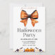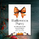 Join us for a bow-tifully spooky celebration with this chic and stylish Halloween party invitation! The design features a large, charmingly illustrated orange and black polka dot bow as the centerpiece, offering a fun and fashionable twist on Halloween. A festive border of jack-o'-lanterns, candles, bats, and gravestones at the bottom completes the spooky scene. It's the perfect choice for a fun costume party or a stylish Halloween bash. All the details are fully customizable to get your ghouls ready for a fabulous time!