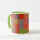 A chic Ringer Mug, with a Green lip and handle and a Faux-patchwork of 'Poppy Fields' patterns. Part of the Posh & Painterly 'Poppy Fields' collection.