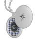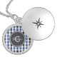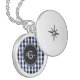chic preppy blue black gingham pattern monogram silver plated necklace