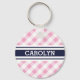chic preppy pink navy gingham pattern monogram keychain