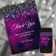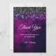Chic purple black silver drips glitter thank you card