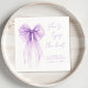 Elegant napkins for your bridal shower featuring a watercolor of a purple coquette bow, "she's tying the knot" showcased in a chic purple calligraphy script, and the bride's name and the shower date in simple purple lettering.