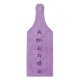 Prepare delicious meals with this custom glass paddle shaped cutting board. Featuring a purple parchment design that can be personalized, purchase yours today!