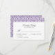 This elegant bat mitzvah response card features a pretty script font and a purple damask border along the top. Space is included to RSVP for both a kiddush lunch and an evening celebration.