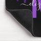 Add a touch of glitter and glam to your home office or school space with this personalized mouse pad. This modern design template features a border of faux purple dripping glitter with sparkles at the top. In the center is your monogram initial in purple with your name in an elegant hand lettered white script on a background of black. A unique girly gift for back to school, birthday and any special occasion. Designed just for you by Extreme Tees!