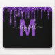Chic Purple Dripping Glitter Monogram Name Mouse Pad