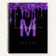 Chic Purple Dripping Glitter Monogram Name Recipe Notebook