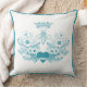 Pretty chic throw pillow with a queen bee | crown bee and floral heart design in teal on white. Update the text that currently reads "WELCOME" as you see fit. Different sizes available and multiple fabrics - choose yours prior to placing into your shopping cart.
