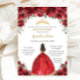 Chic Quinceañera Red Floral Roses Princess Tiara Invitation