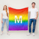 Cozy up with this custom glitter and glam LGBT fleece blanket and show your support. The chic rainbow striped design includes shades of red, orange, yellow, green, blue and purple in faux glitter with a monogram initial in white and name in modern black script . Show your pride!
