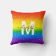 Chic Rainbow Glitter Stripes Monogram Name Throw Pillow