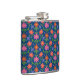 Chic Rangoli Flowers Polka Dots on Blue Hip Flask