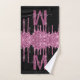 This modern glitter and glam bathroom towel set features a border of faux raspberry pink dripping glitter with sparkles at the top. In the center is your monogram initial and your name in an elegant hand lettered pink script on a background of black. Designed just for you by Extreme Tees!