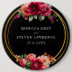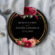 Elegant chic dark red burgundy and black wedding button with beautiful flowers and green leaves. An enchanting fusion of elegance and gothic charm. These beautiful invitations are in rich black and red hues. The calligraphy is elegant and chic and can be easily customised. Romantic and modern floral wedding invitations with classic colors that never go out of style.
