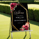 Elegant chic dark red burgundy and black wedding signs with beautiful flowers and green leaves. An enchanting fusion of elegance and gothic charm. These beautiful invitations are in rich black and red hues. The calligraphy is elegant and chic and can be easily customised. Romantic and modern floral wedding invitations with classic colors that never go out of style.