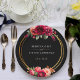 Elegant chic dark red burgundy and black wedding paper plates with beautiful flowers and green leaves. An enchanting fusion of elegance and gothic charm. These beautiful invitations are in rich black and red hues. The calligraphy is elegant and chic and can be easily customised. Romantic and modern floral wedding invitations with classic colors that never go out of style.