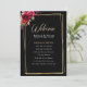 Elegant chic dark red burgundy and black wedding program with beautiful flowers and green leaves. An enchanting fusion of elegance and gothic charm. These beautiful invitations are in rich black and red hues. The calligraphy is elegant and chic and can be easily customised. Romantic and modern floral wedding invitations with classic colors that never go out of style.