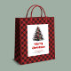 Chic red black plaid tree gift bag editable name