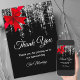 Chic red bow black silver faux glitter holiday lights monogram thank you card. Shimmering cute glittery and chic downloadable thank you card. Perfect for sending out to family or friends for the holiday season or any other occasion like weddings, birthdays, baby showers, wedding showers and bachelorette parties. To make it extra special it is embellished with beautiful faux glitter. This design can also be transferred onto any product on zazzle. You can personalize it with your own text and information.