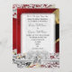 Chic red damask and white lace wedding invitation
