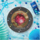 Fun graduation party paper plates featuring a chic red disco ball with colorful graduation hats and colorful music notes.