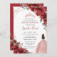 Chic Red Floral Rose Gold Girl Dress Quinceañera Invitation