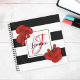 Chic Red Poppies & Black White Stripes Monogram Notebook