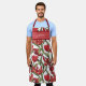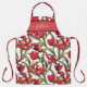 Modern apron with a red tulips floral pattern and a feminine, hand lettered script name. Personalize with your name.