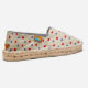 This stylish, trendy and playful red and violet color dot pattern pair of Ubuntu Espadrilles is a cool option for spring and summer. The dots pattern on a natural beige background will brighten up any outfit, while the comfy fabric and construction will make them a go-to choice for a fun day out. The background color can be changed to create a completely new and unique look for the shoes.