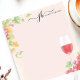 This personalized notepad features a watercolor red wine glass with rich grape clusters and vineyard leaves, creating a stylish and elegant design. Perfect for wine lovers, vineyard enthusiasts, and those who enjoy sophisticated stationery. Customize the text at the top for a unique touch, making it ideal for journaling, note-taking, or gifting.