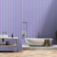 The Chic Regular Stripes in Soft Blue & Violet Wallpaper is part of the “Flutter in Blue: Bath, Beach, Yoga, Travel" collection.