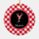 Chic Reindeer Red & White Plaid Personalized Ceramic Ornament