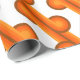 Contemporary modern classic return wrapping paper with white, light and dark orange, and dark brown colored abstract curl waves pattern. Available on products such as wrapping and tissue paper, return address labels, gift tags, bags and favor boxes, stickers and ribbons.