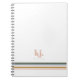 A minimalist monogram design with large typography initials in a classic font with your name below and chic retro rainbow colored stripes. Design a notebook and make it yours with a personalized message on the cover. We all know that special moment when you choose which notebook to use for a project, which journal you will carry with you to jot down your travel notes in, or which planner you’ll use for the year ahead. Now you can make it even more unique. It is also a way to make a gift more personal, add the recipient's name, a special date that unites you or a message that will bring you closer.