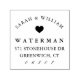 Elegant return address rubber stamp features your first names curved gracefully over a small heart illustration, with your family name and return address details beneath.