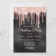 Chic rose blush black dripping monogram Christmas Invitation