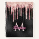 Chic rose blush, black glitter dripping monogram Notebook. Cool for school, work or as a journal or diary! To make it extra special, it is also monogrammed and personalized with name or initials or any text you like, click the "customize further" link and use the design tool to modify the design if you like.