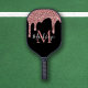 Chic Rose Gold and Black Glitter Drips Monogram Pickleball Paddle