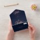 Chic rose gold elegant script navy blue wedding all in one invitation