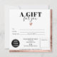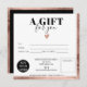 Modern chic faux rose gold foil stripe black and white simple square gift certificate, add your logo, with a rose gold heart. Perfect birthday or Christmas gift certificate voucher.