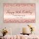 Elegant Modern Sparkle Rose gold glitter metallic Personalized Happy 90th (or ANY AGE) Birthday Party Banner. This Girly Adult feminine NINETY (NINETIETH) Birhday party decor featuring "Happy 90th Birthday" text in a stylish handwritten calligraphy script and custom name, date on blush pink or rose gold faux brushed metallic foil look background with loose glam glitter frame. Ideal for a feminine adult or girly milestone birthday celebration, this perfectly captures the essence of a modern rose gold or blush pink glitter sparkle girly birthday party. Perfect for a welcome banner or even a party decoration.