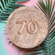 This chic, girly design features a pattern of sparkly rose gold leopard spots on a blush pink background, with "70" in large rose gold balloon numbers. Ideal for a trendy 70th birthday party.