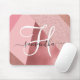 Chic trendy rose gold monogram mouse pad. Design features rose gold tiled background , name and initial in modern lettering.