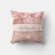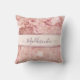 Chic Rose Pink Crystal Monogram Name Marble Agate Throw Pillow