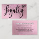 This is the perfect Loyalty Discount Card for a trendy, stylish, and modern business. This design features a simple black handwritten brush script typography on a faux printed diagonal sparkly rose pink glitter and blush pink ombre gradient glamorous and chic background. These cards will add that personal and professional touch to your business and career advertisement.