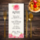 A menu card with watercolor roses at the top and bottom and your details in chic lettering, perfect for your Derby party or any special event. MATCHING items in our collection.