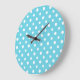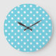 Chic Round Wall Clock: Turquoise Polka Dots Large Clock